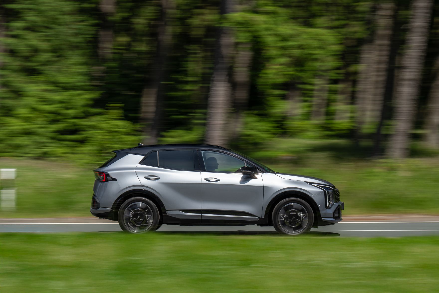 Muskularne nadwozie nowej Kii Sportage wyróżnia się śmiałą linią boczną podkreśloną listwami i technicznymi detalami, które nadają mu sportowego charakteru. Z przodu uwagę przyciągają futurystyczne reflektory LED i czarna osłona chłodnicy o strukturze plastra miodu. Dach w kolorze fortepianowej czerni i progresywny design tylnego słupka podkreślają nowoczesny styl auta. Wnętrze jest silnie zorientowane na kierowcę. Cyfrowe wskaźniki zintegrowano z dotykowym ekranem multimedialnym, a szybkie przełączanie między funkcjami klimatyzacji i info-rozrywki zapewnia pełną wygodę. Sportage oferuje szeroki wybór napędów, w tym turbodoładowany silnik 1.6 T-GDI o mocy 160 KM oraz hybrydę HEV o mocy 239 KM. W każdym wariancie auto zachowuje dynamiczny charakter i doskonałe właściwości jezdne. SUV sprawdzi się zarówno na długich trasach, jak i w mieście. Dzięki kompaktowym wymiarom i bogatemu pakietowi systemów wsparcia. Dodatkowo w ofercie znajduje się również wersja hybrydowa PHEV.