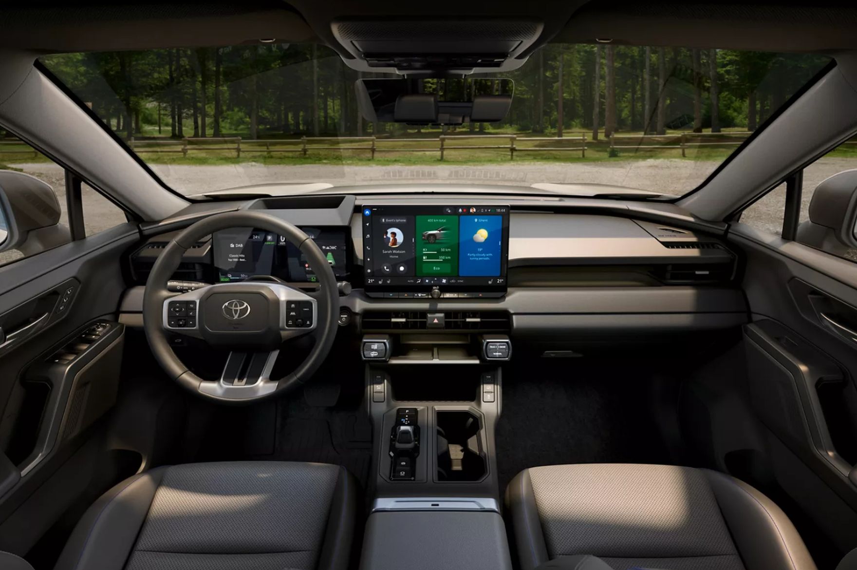 Toyota RAV4 pokazuje, że nowoczesny SUV może być zarówno intuicyjny, jak i zaawansowany technologicznie. Duże, czytelne wyświetlacze 12,9-calowy ekran multimedialny i 12,3-calowy Digital Cockpit prezentują wszystkie kluczowe informacje w przejrzysty sposób, a obsługa systemów jest prosta i naturalna, tak aby nic nie odciągało uwagi od jazdy. System Toyota Smart Connect+® wprowadza nowy łatwy w użyciu interfejs z w pełni personalizowanym ekranem głównym i inteligentnymi widżetami. Nawigacja w chmurze przekazuje aktualne informacje o ruchu drogowym, a Digital Cockpit pokazuje wszystkie potrzebne dane od wskazówek nawigacji po multimedia wprost pod ręką kierowcy.