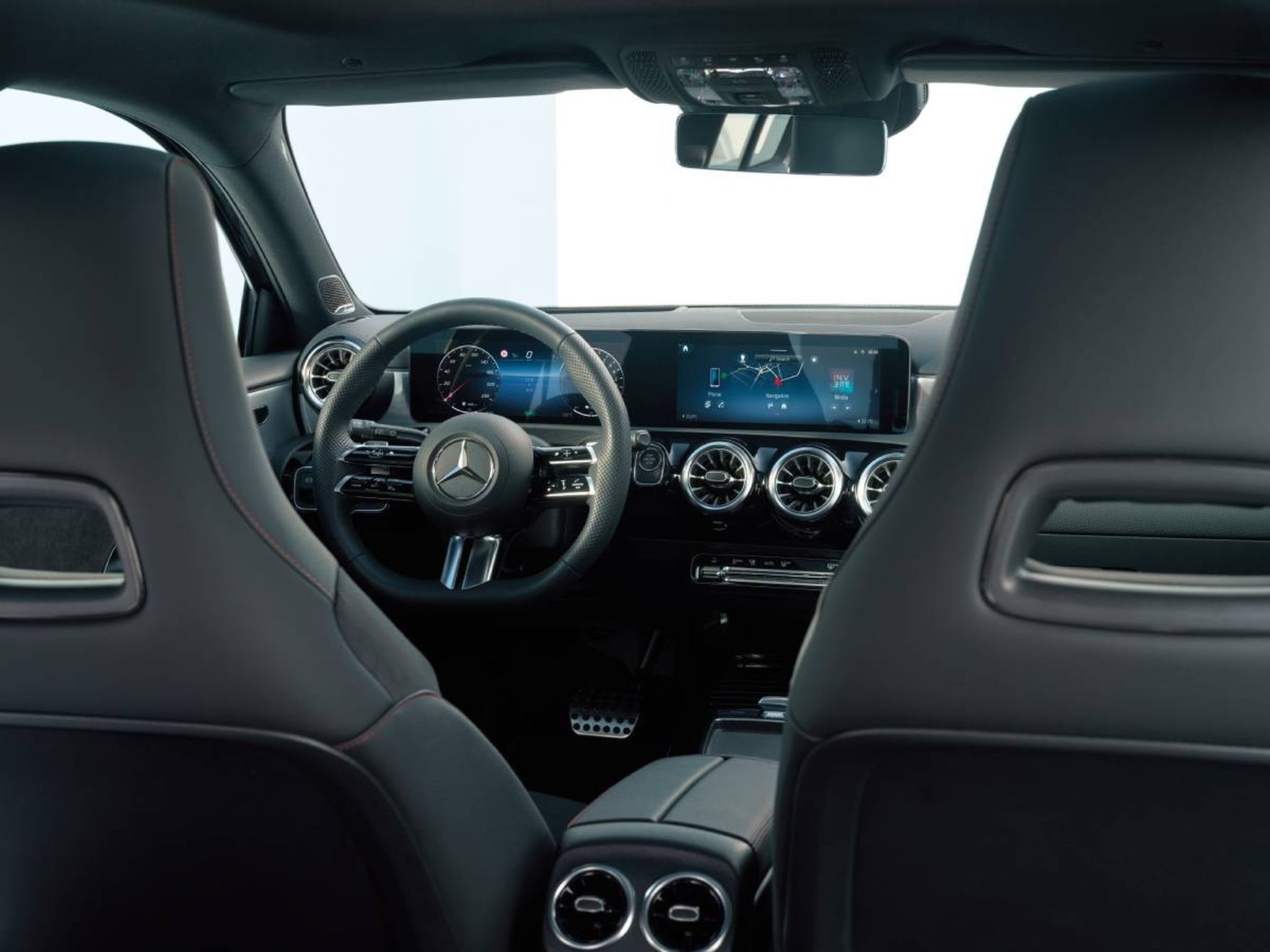 Wnętrze Klasy A to przestrzeń zaprojektowana z myślą o kierowcy. Cyfrowy kokpit z dwoma ekranami tworzy nowoczesny interfejs, który nie tylko wygląda efektownie, ale też ułatwia codzienną obsługę. System multimedialny MBUX reaguje na komendy głosowe, ucząc się stylu jazdy i preferencji użytkownika. Całość dopełnia nastrojowe oświetlenie ambientowe oraz najwyższa jakość materiałów wykończeniowych – od wyprofilowanych foteli po aluminiowe detale. To kabina, w której podróż staje się przyjemnością, a każda trasa – doświadczeniem klasy premium.