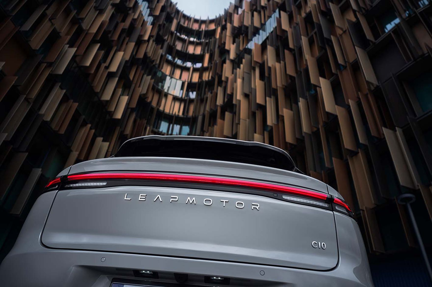 Leapmotor C10 został zaprojektowany tak, by od pierwszego spojrzenia komunikować stabilność i nowoczesność. Jego sylwetka jest elegancka, ale nieprzesadzona, masywna w proporcjach, a jednocześnie czysta w detalach. Harmonijne linie nadwozia budują wrażenie solidności i dopracowania, bez zbędnych ozdobników. Wyważony przód z automatycznymi reflektorami LED tworzy charakterystyczną, technologiczną sygnaturę świetlną, która płynnie wpisuje się w aerodynamiczną linię nadwozia. Szeroko rozrysowany pas przedni podkreśla stabilność auta na drodze i nadaje mu nowoczesny, uporządkowany charakter. To design, który nie epatuje agresją, lecz spokojną pewnością siebie i dojrzałą elegancją.