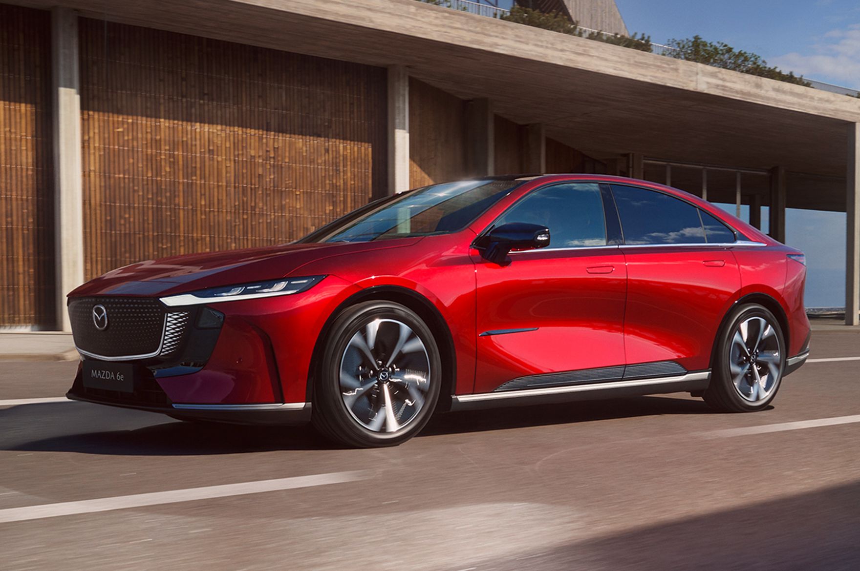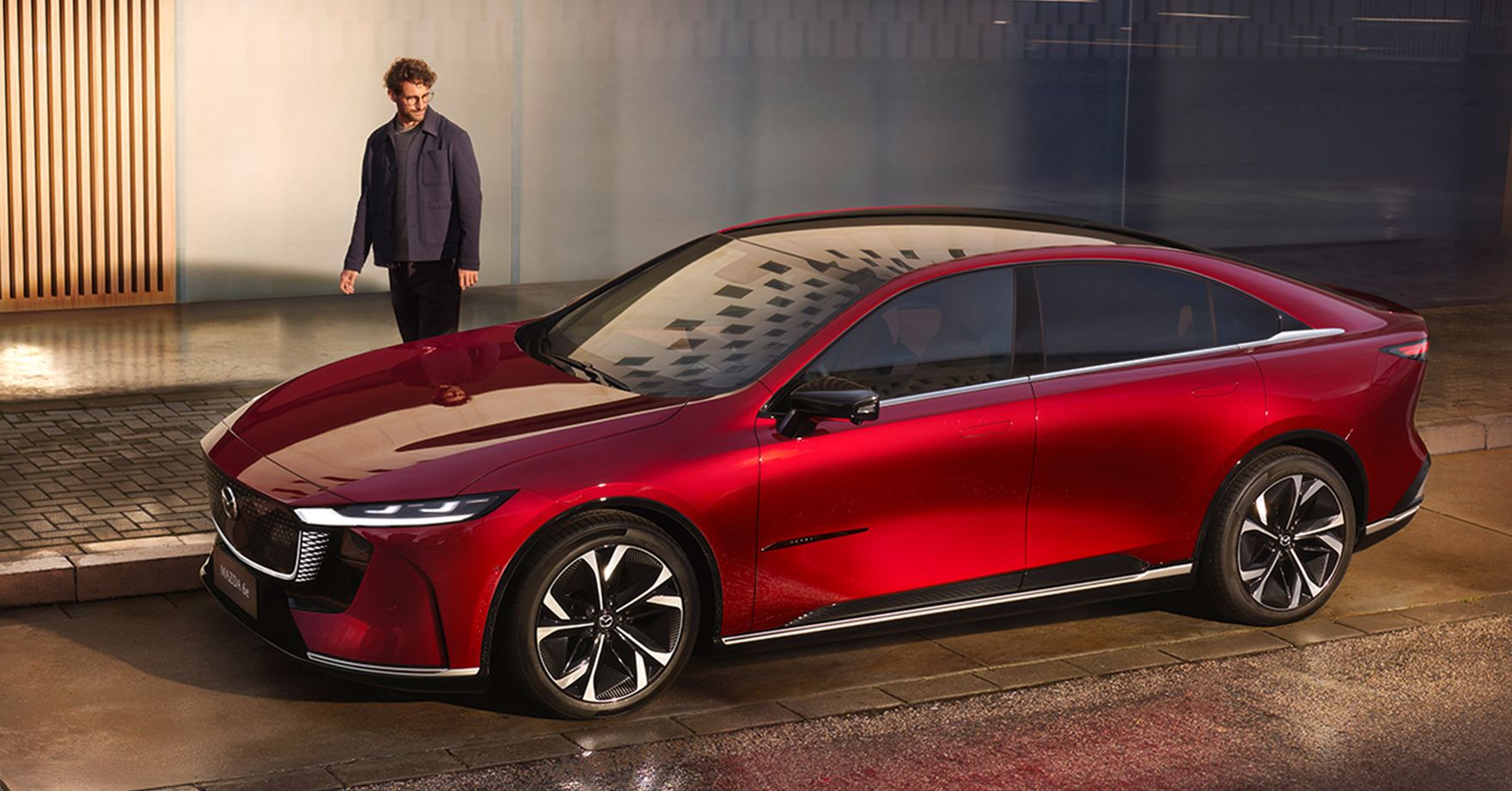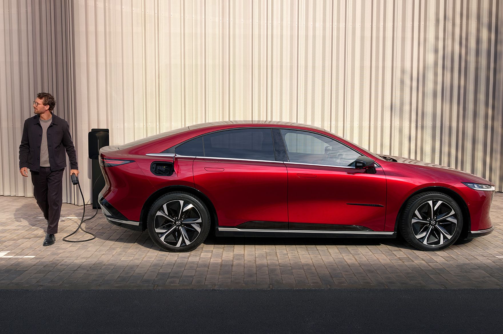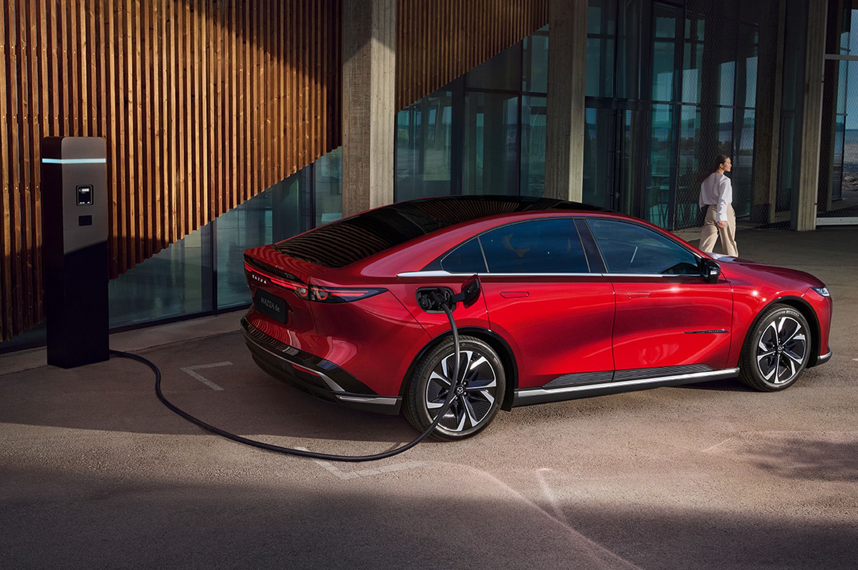 Mazda6e przyciąga wzrok wyrafinowaną sylwetką coupé, połączoną z praktycznym hatchbackiem. Wyraziste reflektory LED, dach panoramiczny i wysuwany tylny spoiler podkreślają sportowy charakter, a aerodynamiczne 19-calowe felgi zwiększają zasięg. Samochód dostępny jest w dwóch wersjach akumulatora: 68,8 kWh (zasięg do 479 km) i 80 kWh (do 552 km). Dzięki szybkiemu ładowaniu prądem stałym: do 235 km w 15 minut lub do 385 km w 47 minut, podróżowanie staje się wygodne i bezstresowe. Mazda6e zachowuje przy tym dynamikę i pewność prowadzenia. Zasada Jinba Ittai gwarantuje jedność kierowcy z samochodem.