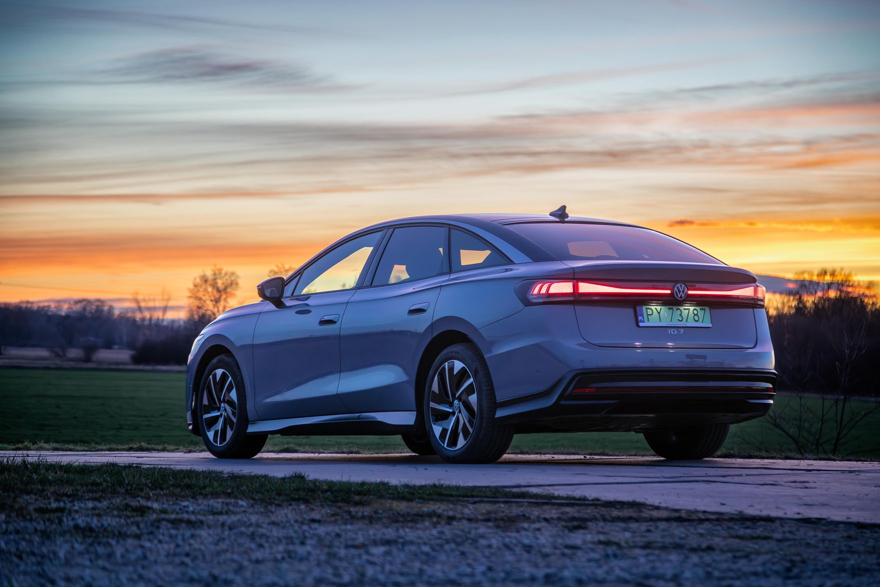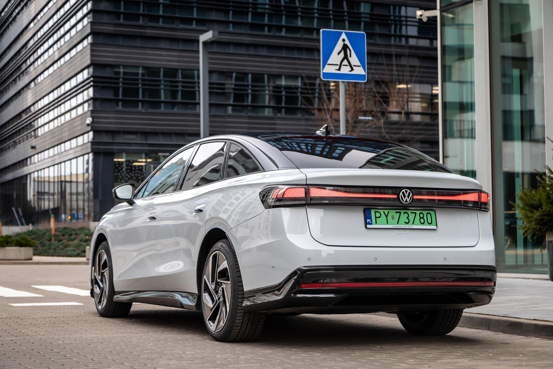 Klasyczne nadwozie tej limuzyny wygląda jeszcze atrakcyjniej dzięki dynamicznej, opadającej linii dachu. Nowy ID.7 mierzy niespełna 5 metrów długości, a duży rozstaw osi zapewnia znakomitą przestronność wnętrza. Warto zwrócić uwagę także na opływowy i elegancki przód podkreślony przez nowoczesne opcjonalne reflektory matrycowe IQ.Light ze stylowym pasem diod rozciągającym się od reflektorów do logo umieszczonego centralnie. Specjalne wloty powietrza nie są tylko stylistycznym akcentem, ale zapewniają optymalny przepływ powietrza wzdłuż boków nadwozia, obniżając w ten sposób współczynnik oporu. Elegancji dodają także tylne lampy, które wyróżniają się zróżnicowanymi animacjami świetlnymi, które robią niemałe wrażenie podczas otwierania i zamykania samochodu.