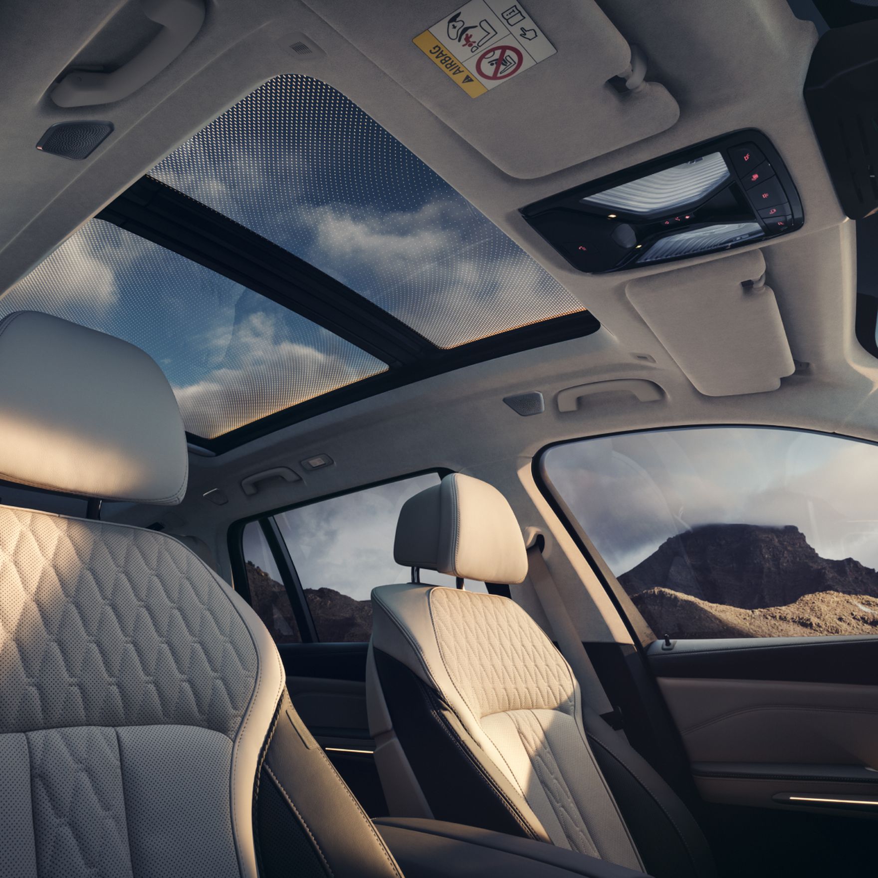 We wnętrzu X7 panuje atmosfera prywatnego lounge’u. Skóra Merino, ręcznie wykonane szklane aplikacje „CraftedClarity”, a także szklany dach panoramiczny tworzą przestrzeń, w której każdy detal ma znaczenie. System Bowers & Wilkins Diamond Surround o mocy niemal 2000 W zamienia kabinę w salę koncertową, a 5-strefowa klimatyzacja dba o idealną temperaturę dla wszystkich pasażerów. Dodatkowym atutem jest możliwość konfiguracji 6-miejscowego układu siedzeń. To idealna opcja dla rodzin lub podróży w luksusowym stylu.