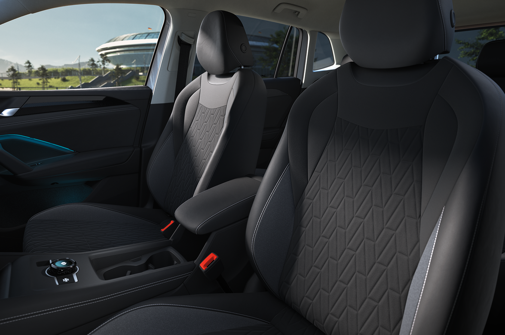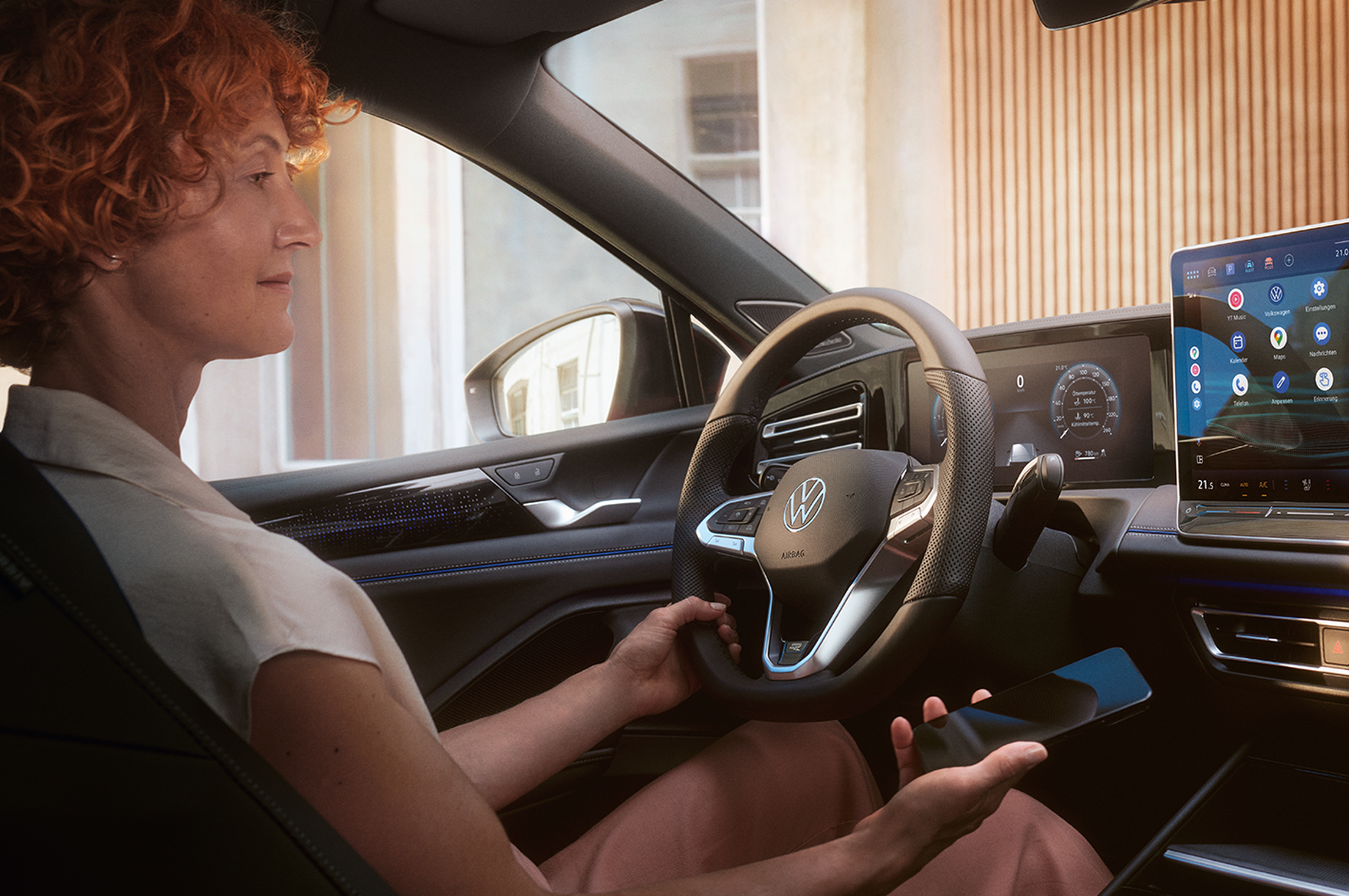 Wnętrze zostało zaprojektowane według nowej koncepcji. Postawiono tu na materiały wysokiej jakości oraz intuicyjność obsługi. Podstawowe wyposażenie obejmuje szereg nowoczesnych systemów bezpieczeństwa, takich jak Front Assist (autonomiczne hamowanie awaryjne), asystent pasa ruchu czy czujnik martwego pola oraz kamera cofania. Volkswagen Tiguan możemy także wyposażyć w zestaw systemów asystujących IQ Drive High z kamerą 360 stopni. W podstawowym wyposażeniu znajdziemy również nowość – obrotowy przełącznik wrażeń z jazdy ze zintegrowanym wyświetlaczem OLED. Nie tylko wybierzemy nim odpowiedni profil jazdy, ale także zmienimy głośność radia czy kolor oświetlenia ambientowego. W opcjonalnym wyposażeniu kierowca ma do dyspozycji 15-calowy ekran dotykowy z zupełnie nowym systemem infotainment, a także wyświetlacz head-up.
