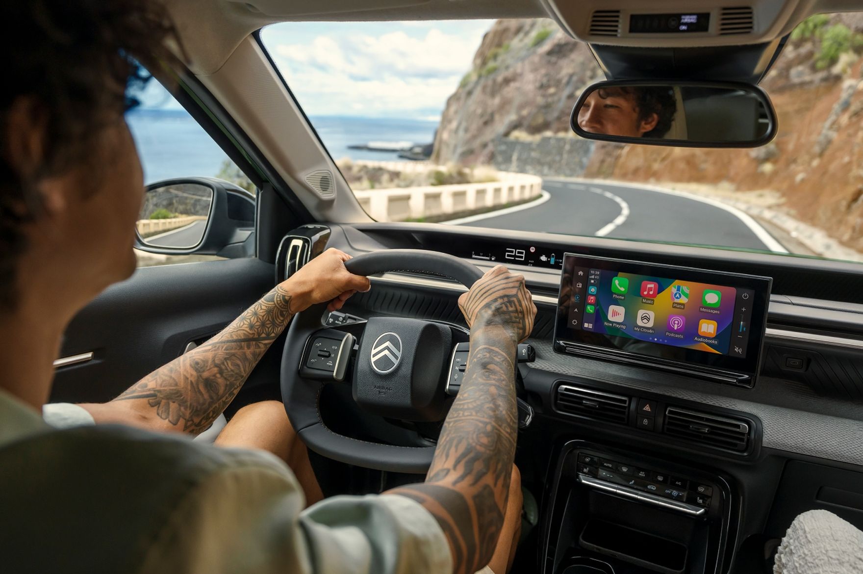 Na desce rozdzielczej nowego Citroëna C3 Aircross znajduje się nowoczesny ekran dotykowy HD o przekątnej 10,25 cala (od wersji Plus), obsługujący systemy Apple CarPlay™ i Android Auto™. Tradycyjny zestaw wskaźników zastępuje wyświetlacz Citroën Head‑up, zapewniający intuicyjną kontrolę nad funkcjami auta. Liczne schowki, wygodne fotele z technologią Advanced Comfort i starannie dobrane materiały wykończeniowe tworzą przytulne, a zarazem funkcjonalne wnętrze. Całość dopełnia wysoka pozycja za kierownicą i panoramiczna widoczność, które potęgują wrażenie swobody i bezpieczeństwa podczas jazdy.