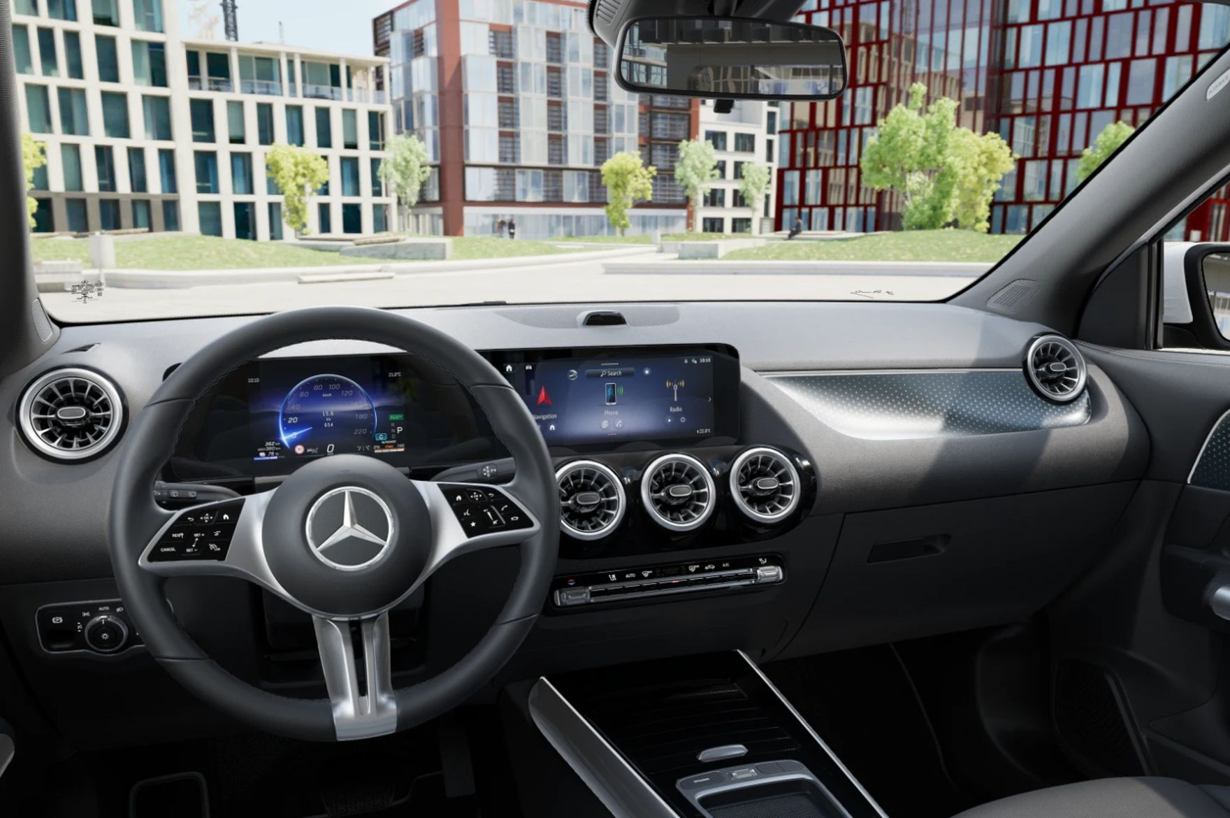 Tu technologia naprawdę żyje razem z kierowcą. Na środku deski rozdzielczej dominuje 10,25 calowy ekran multimedialny o świetnej rozdzielczości, który reaguje na dotyk szybko i naturalnie, jak dobry smartfon. System MBUX to coś więcej niż zwykłe multimedia. Wystarczy powiedzieć Hej Mercedes, by samochód zaczął słuchać poleceń i z czasem uczył się nawyków użytkownika. Profile osobiste, inteligentne podpowiedzi i hotspot WiFi sprawiają, że auto staje się częścią codziennego, cyfrowego świata. Nawigacja MBUX Premium prowadzi do celu w oparciu o aktualne dane o ruchu drogowym i mapy online. W trakcie podróży potrafi podsunąć przydatne informacje, na przykład o pogodzie czy wolnych miejscach parkingowych. Dzięki temu każda trasa jest nie tylko prostsza, ale też bardziej przewidywalna i spokojna. Mercedes EQA dostępny jest w programie Lease&Drive już od 899 zł netto miesięcznie w ramach programu NaszEauto, co sprawia, że wejście do świata Mercedesa premium staje się zaskakująco przystępne.