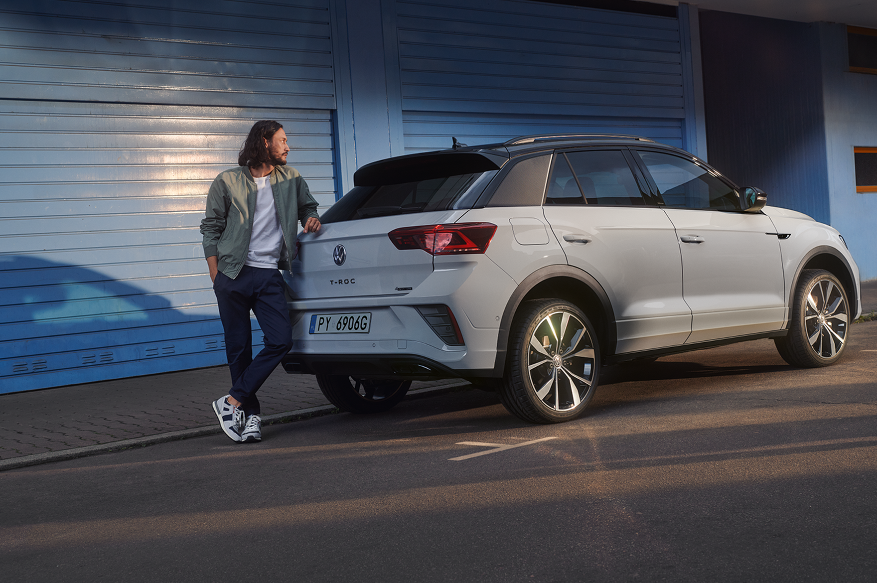 T-Roc zaprojektowany został tak, by sprawdzać się zawsze i wszędzie - w miejskiej dżungli dzięki swoim kompaktowym rozmiarom, natomiast podwyższone zawieszenie i precyzyjny układ kierowniczy sprostają wymaganiom na bezdrożach. Niezwykle praktycznym rozwiązaniem jest kamera cofania ukryta pod znaczkiem, która przekazuje kierowcy przejrzysty obraz z zewnątrz. O wszechstronności T-Roca świadczy również jego bagażnik o pojemności 445 litrów. Z opcjonalną funkcją Easy Open & Close można zamykać go bezdotykowo – wystarczy aktywować ruch nogą i oddalić się od auta na kilka kroków.