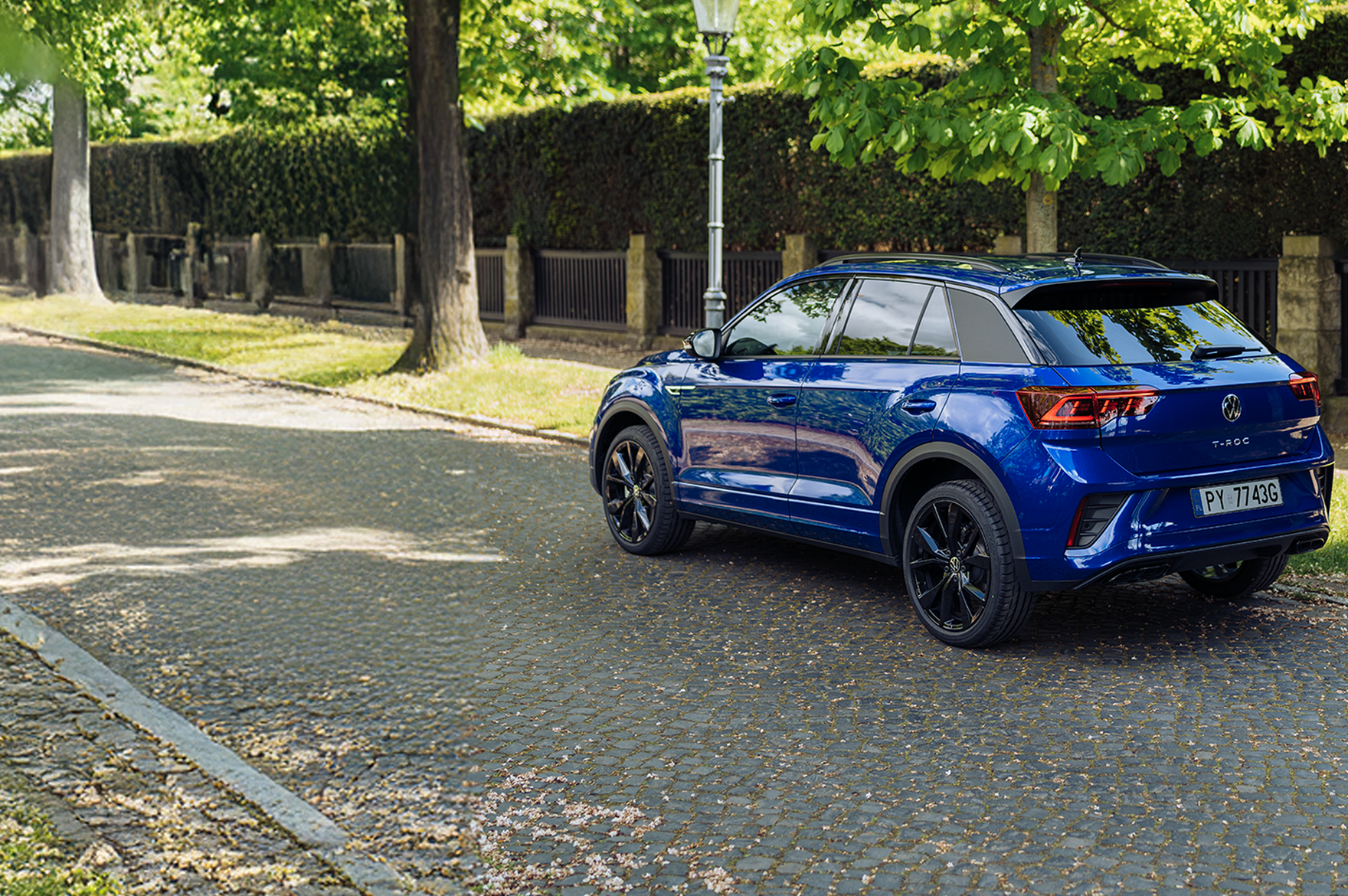 T-Roc dobrze odzwierciedla filozofię projektową marki Volkswagen, która w przypadku aut w nadwoziu SUV stawia na opływowe kształty karoserii, zdecydowane linie nadwozia i masywną bryłę, podkreślającą moc i wszechstronność pojazdu. Wyróżnia się tu między innymi potężny słupek C, chromowane elementy, diodowe reflektory i przyciemniane tylne światła o progresywnym wyglądzie. W opcjonalnym wyposażeniu dostępne jest też oświetlenie osłony chłodnicy, które z pewnością dodaje całej sylwetce elegancji. Na szczególną uwagę zasługuje pakiet stylistyczny Black Style ze słupkami C z efektem wykończenia karbonem, czarnymi lusterkami oraz 18-calowymi czarnymi felgami.