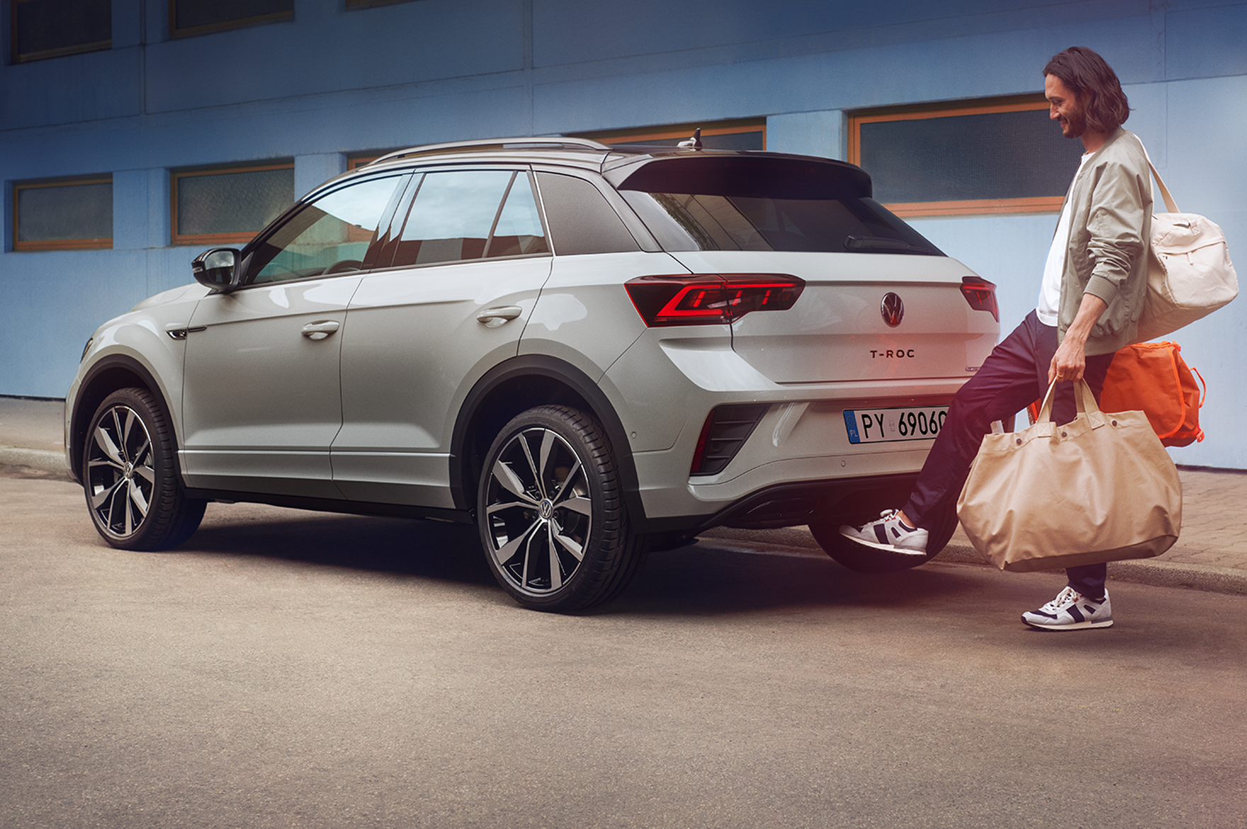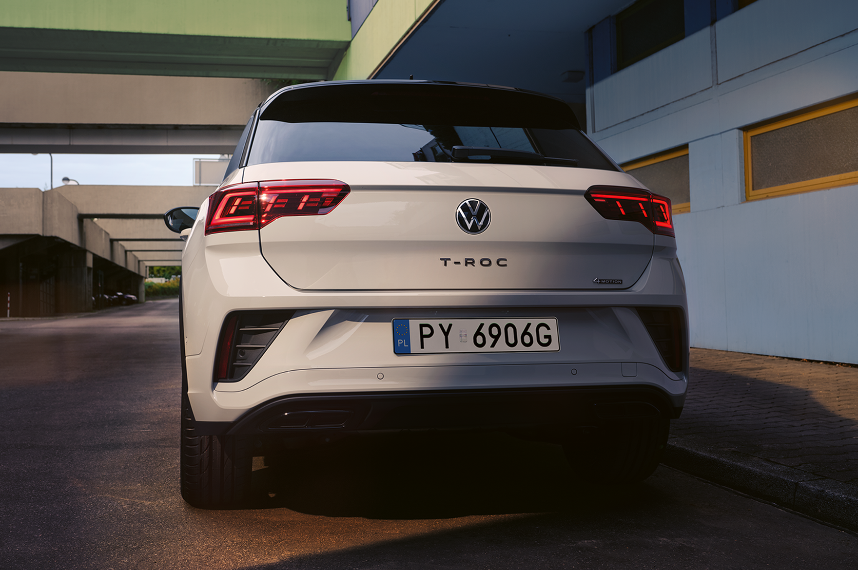T-Roc zaprojektowany został tak, by sprawdzać się zawsze i wszędzie - w miejskiej dżungli dzięki swoim kompaktowym rozmiarom, natomiast podwyższone zawieszenie i precyzyjny układ kierowniczy sprostają wymaganiom na bezdrożach. Niezwykle praktycznym rozwiązaniem jest kamera cofania ukryta pod znaczkiem, która przekazuje kierowcy przejrzysty obraz z zewnątrz. O wszechstronności T-Roca świadczy również jego bagażnik o pojemności 445 litrów. Z opcjonalną funkcją Easy Open & Close można zamykać go bezdotykowo – wystarczy aktywować ruch nogą i oddalić się od auta na kilka kroków.