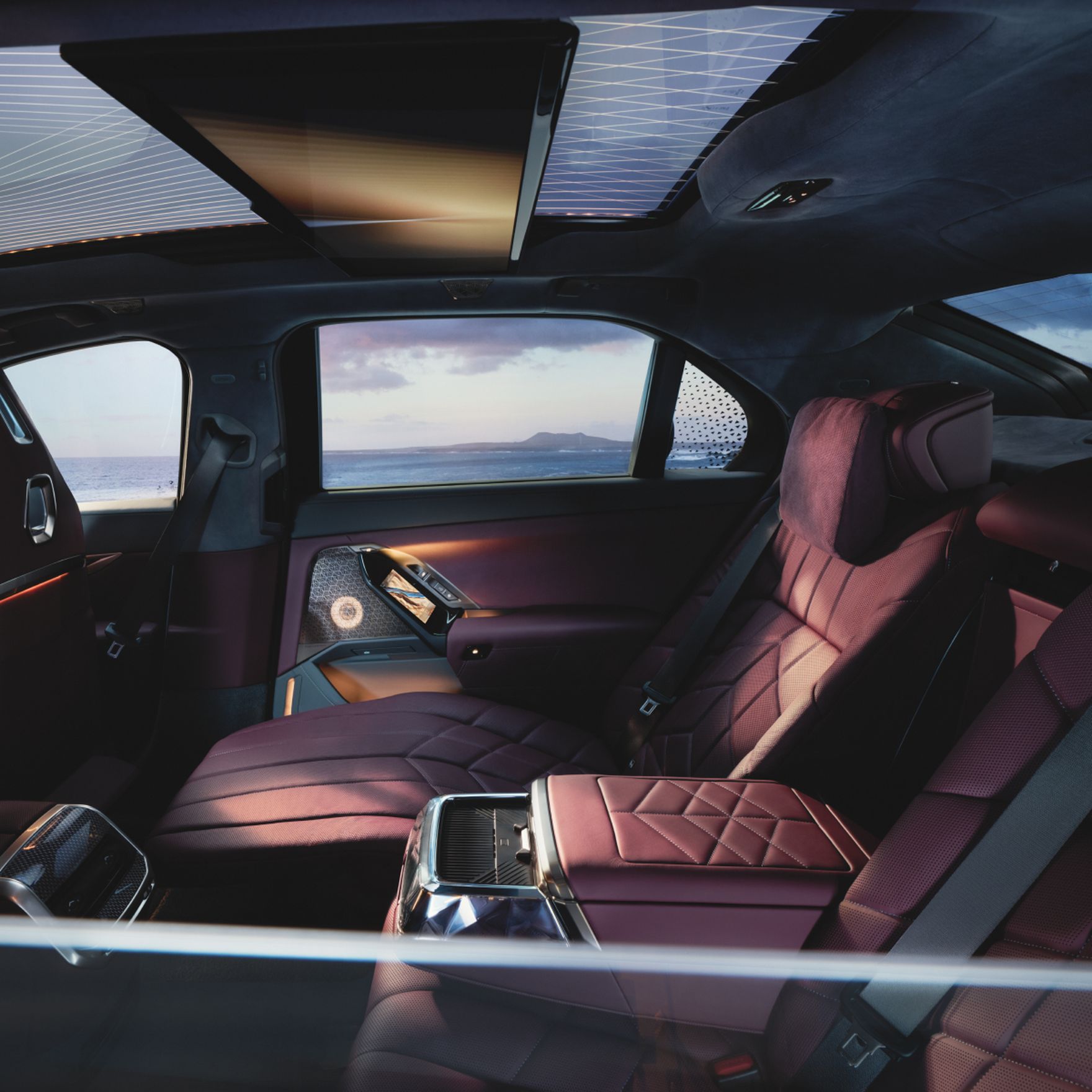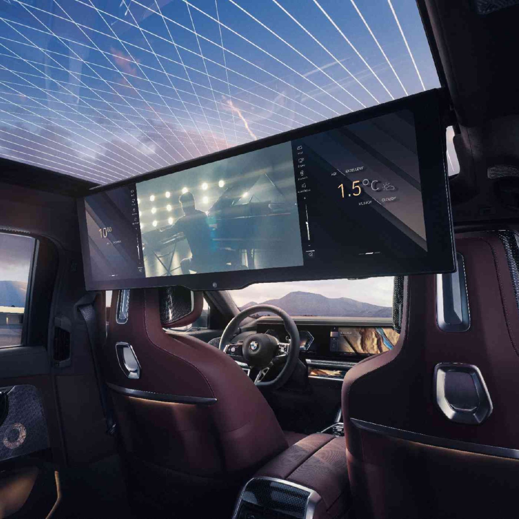 Wnętrze BMW serii 7 łączy przestrzeń, komfort i nowoczesne technologie. Zakrzywiony wyświetlacz Curved Display, system rozrywki z tyłu BMW Theatre Screen oraz szklany dach panoramiczny Sky Lounge zapewniają niezwykłe doznania zarówno dla kierowcy, jak i pasażerów. Fotele Executive Lounge umożliwiają relaks w pełni, a pryzmatowe oświetlenie wnętrza wprowadza luksusową atmosferę, tworząc przestrzeń, w której każda podróż jest przyjemnością.